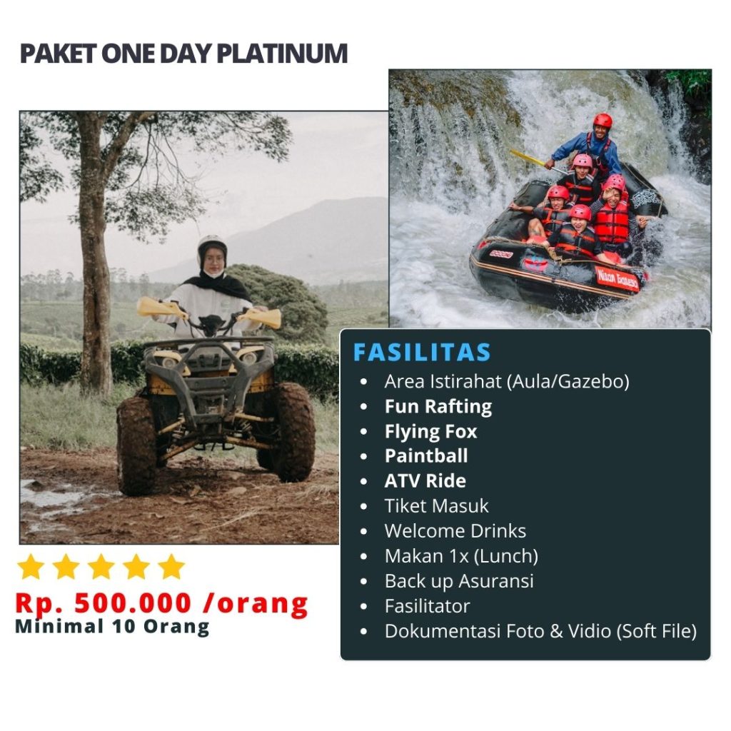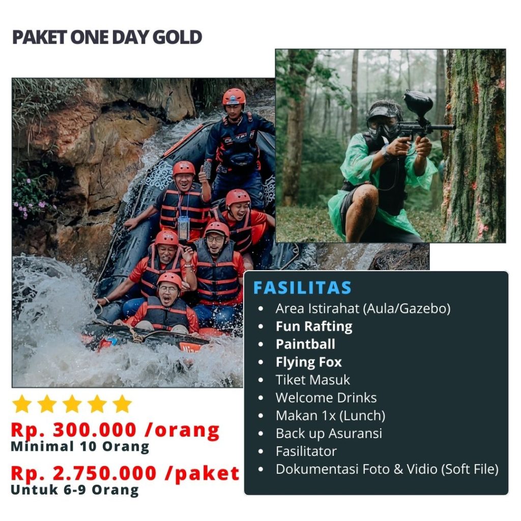Paket Fun Outbound Satu Hari adalah solusi tepat bagi Anda yang ingin menikmati berbagai aktivitas outbound tanpa harus menginap. Dengan beragam pilihan kegiatan, paket ini memberikan kesempatan bagi Anda untuk mencoba banyak hal dalam waktu satu hari penuh. Aktivitas yang kami tawarkan meliputi rafting, paintball, ATV ride, flying fox, dan masih banyak lagi. Semua kegiatan ini disesuaikan untuk berbagai kelompok, mulai dari keluarga, teman, hingga rekan kerja.