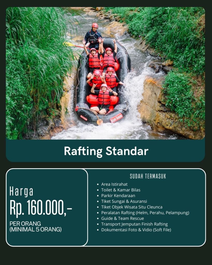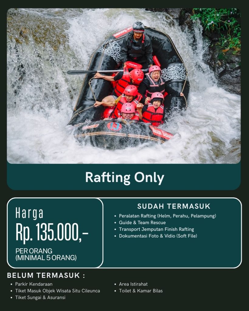 - Aliran Sungai Stabil: Menggunakan aliran sungai dari bendungan Danau Situ Cileunca yang stabil di semua musim, memastikan pengalaman rafting yang konsisten dan aman.